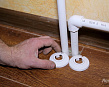 - Розетты нет необходимости приклеивать к поверхности пола. Они просто устанавливаются сверху на покрытие. Это позволяет при необходимости повторно использовать приспособления, снимать их и снова ставить. Главное – не повредить крепления.