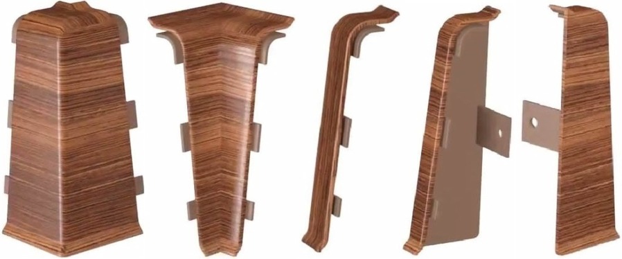 При использовании плинтуса дополнительно применяется специальная фурнитура, которая придает помещению завершенного вида и помогает скрыть места стыковки элементов. На данный момент существует огромное количество разновидностей подобных изделий, у каждого из которых своя область использования и отличительные черты.